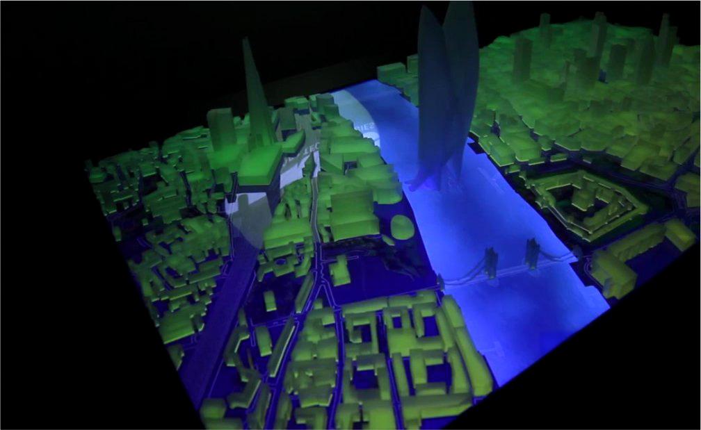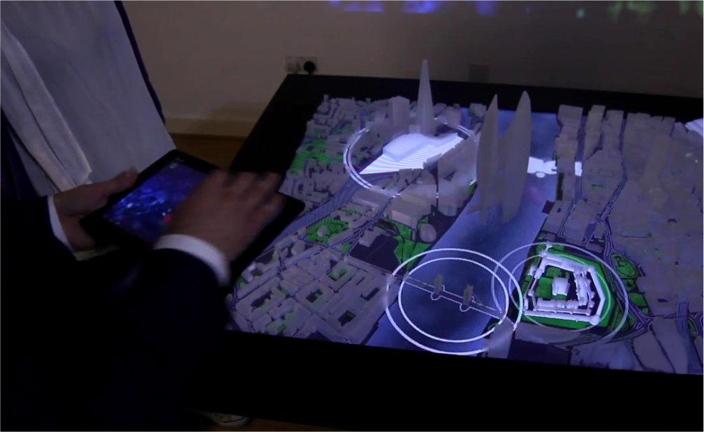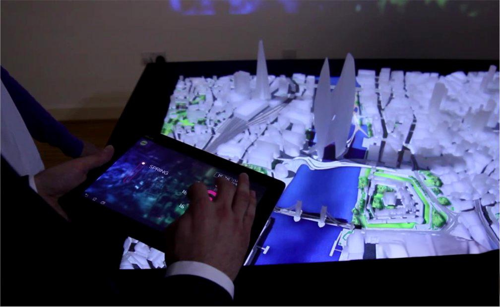 數(shù)字沙盤是用投影投射在物理模型上,利用聲光電進(jìn)行展示的沙盤系統(tǒng)。投影沙盤又稱數(shù)字沙盤投影系統(tǒng),分為實(shí)體模型與虛擬影像相結(jié)合及全虛擬兩種。所謂數(shù)字沙盤就是以計(jì)算機(jī)技術(shù)為核心的現(xiàn)代高科技手段生成逼真的三維圖像模型,借助投影顯示設(shè)備或其他顯示設(shè)備把計(jì)算機(jī)上的三維或四維圖形圖像模型顯示到臺面上。具體地說,就是將模擬的三維立體影像精確投影到實(shí)體模型的相應(yīng)位置,與實(shí)體沙盤互動展示的演示相映成輝,使沙盤的演示效果更加形象、生動,還可以是桌面投影、地面投影、墻面壁投影顯示等,參觀者以自然的手勢動作與大屏幕投影的三維模型交互作用,多方位多層次瀏覽查詢,從而快速地獲取簡明、精確、優(yōu)美、逼真的動態(tài)信息。